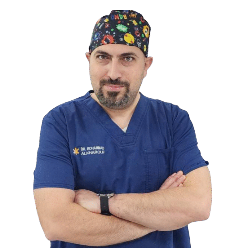 د. محمد الخاروف استشاري في الجراحة العامة وجراحة المنظار، متخصص في عمليات السمنة المفرطة، استئصال المرارة بالمنظار، إصلاح جميع أنواع الفتوق، جراحة الجهاز الهضمي، وجراحات الثدي والبواسير بالليزر والطرق التقليدية.